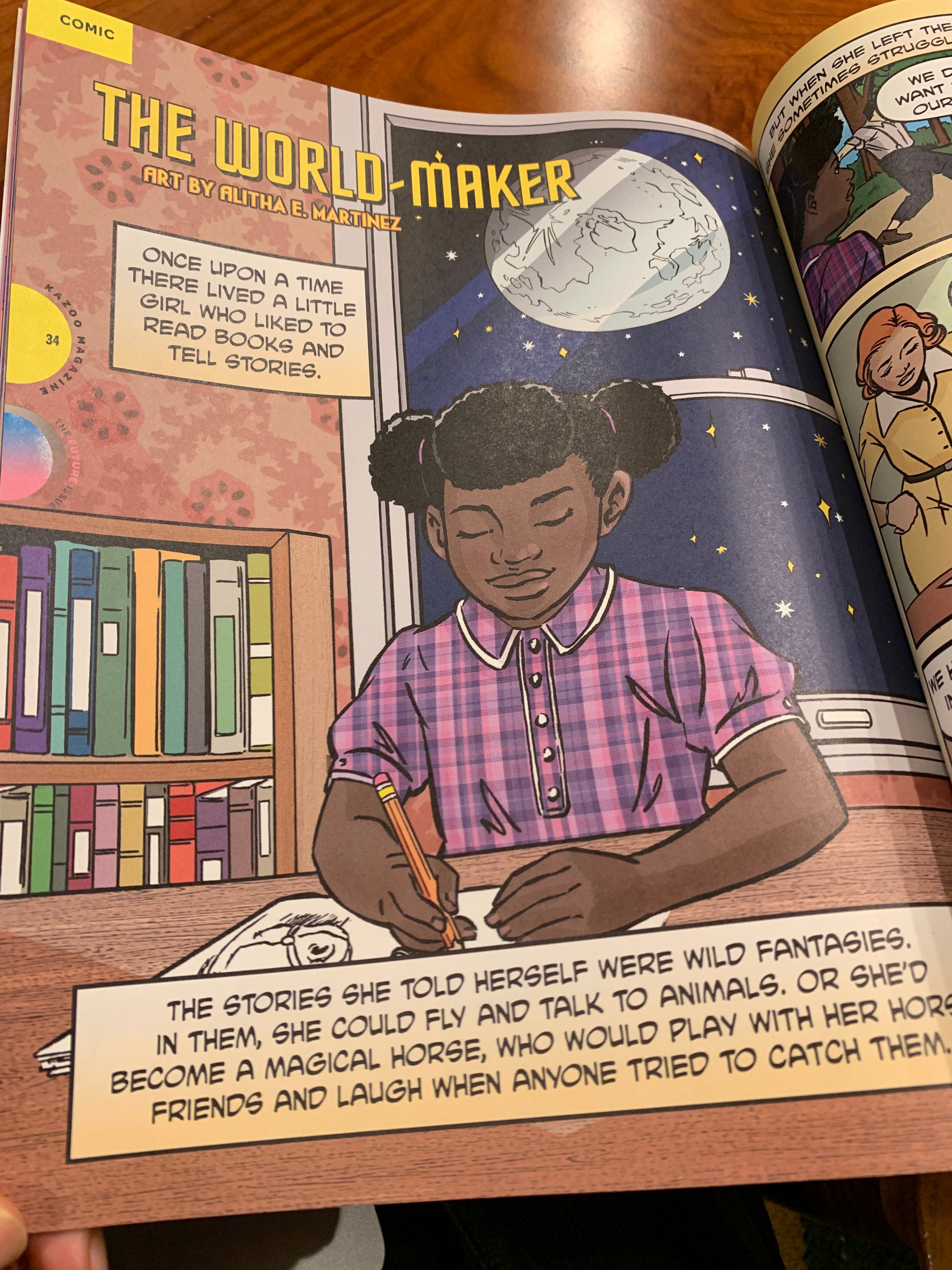 Not an ad. I just love this mag. My daughter has a subscription to a brilliant independent print magazine called Kazoo. The current issue features a segment illustrated by incredible American comic book artist Alitha E. Martinez about one of my all-time favorite writers Octavia Butler. Do yourself a favor and check it out if you can.